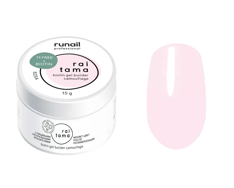 Runail Гипоаллергенный Гель Raitama с биотином - Камуфлирующий гель средне-густой консистенции с высокой степенью вязкости.