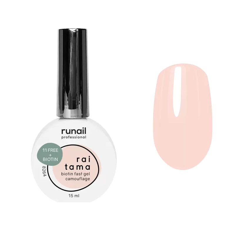Runail Камуфлирующий гипоаллергенный жидкий УФ-гель Raitama с биотином - прочный моделирующий материал средней вязкости и средне-жидкой консистенции.