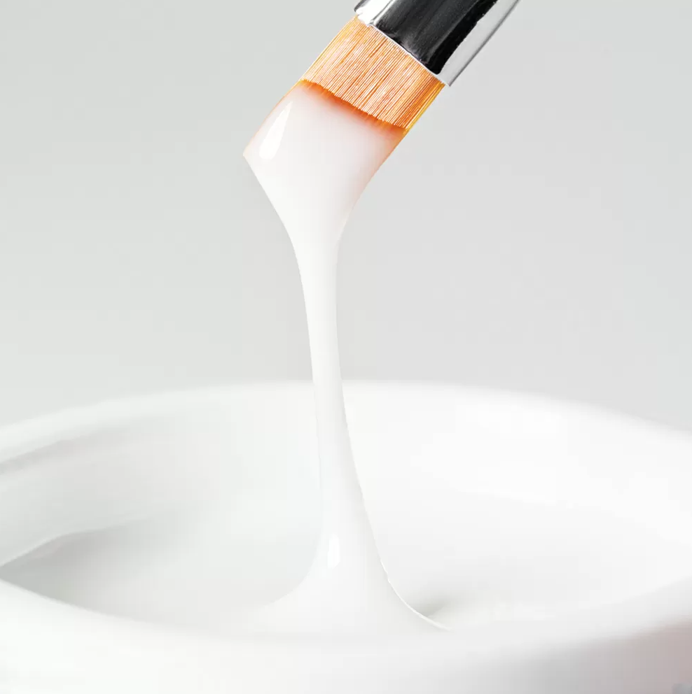 Нежный молочный оттенок равномерно перекрывает мелкие дефекты ногтя, придает естественный цвет и делает границу отрастания менее заметной.