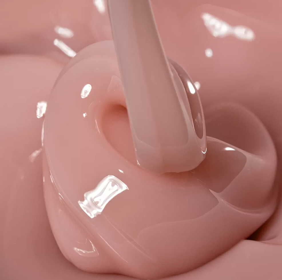 Нежный светло-розовый оттенок равномерно перекрывает мелкие дефекты ногтя, придает естественный цвет и делает границу отрастания менее заметной.