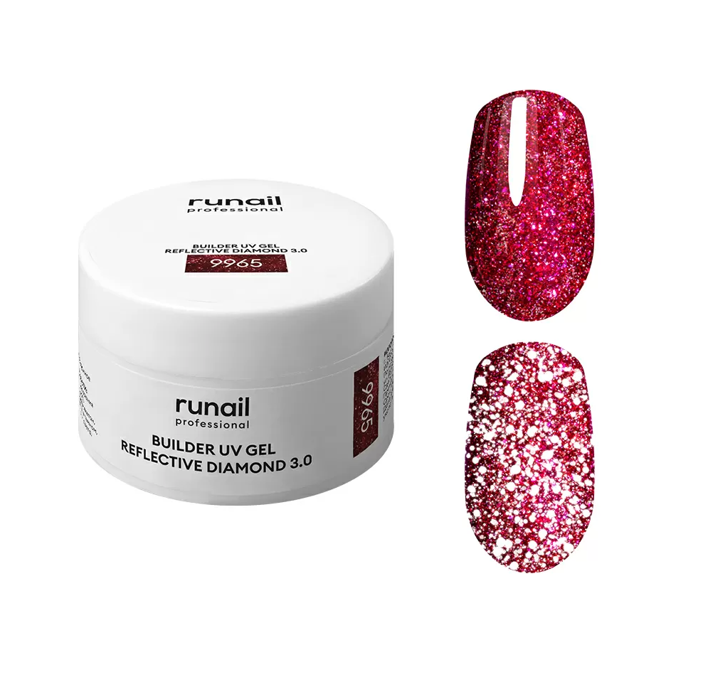 Runail Моделирующий УФ-гель светоотражающий REFLECTIVE DIAMOND 3.0 - в роскошном бордовом цвете с отражающими частицами и хлопьями юки - это идеальный выбор для создания элегантного и эффектного дизайна прямо на этапе моделирования.