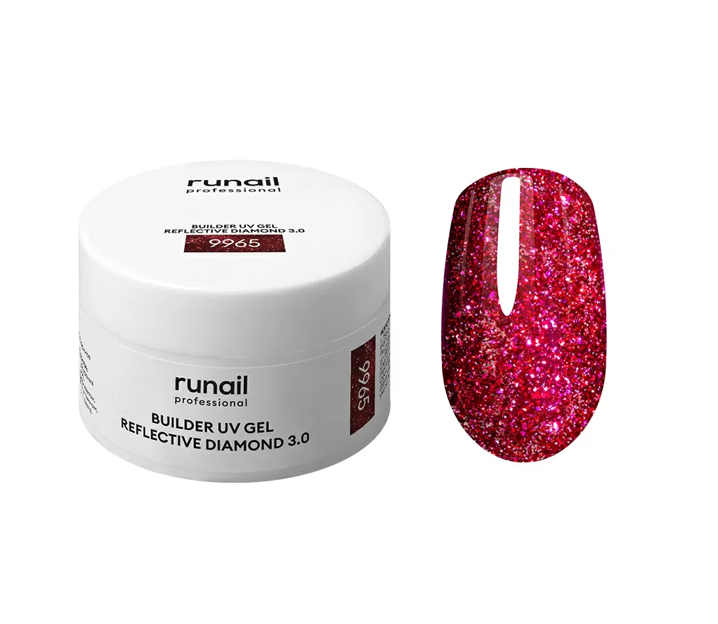 - 9965 RuNail Моделирующий УФ-гель светоотражающий BUILDER UV GEL REFLECTIVE DIAMOND 3.0, 15 гр.