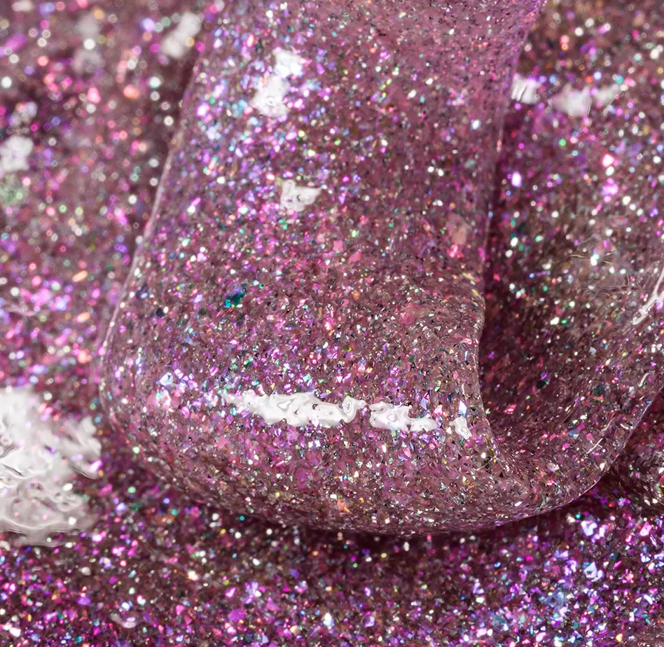 Микс частицы рефлективного пигмента и хлопьев Юки в цветной витражной основе сохраняет интенсивность блеска на протяжении всего срока носки.