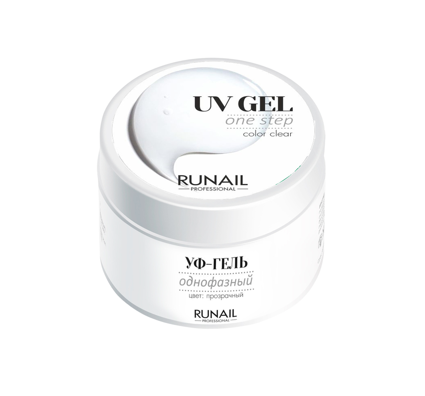 RuNail Кристально-прозрачный однофазный УФ-гель для наращивания ногтей средне-густой консистенции.