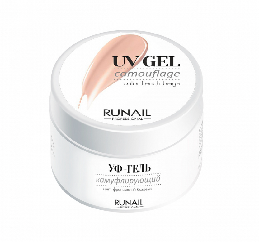 RuNail Гипоаллергенный камуфлирующий УФ-Гель Французский Бежевый средне-густой консистенции.