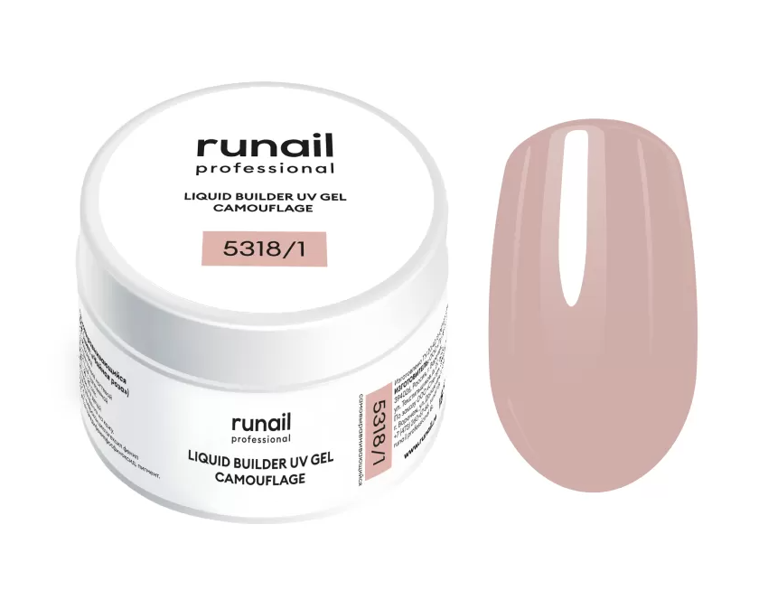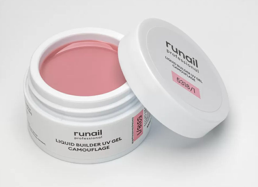 - 5318/1 RuNail Камуфлирующий Жидкий УФ Гель Чайная роза, 15 мл. банка