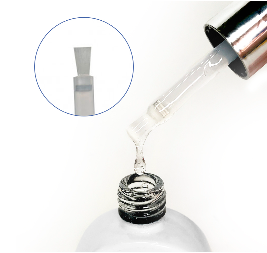 Укороченная кисть из флакона позволяет легко контролировать количество используемого материала.