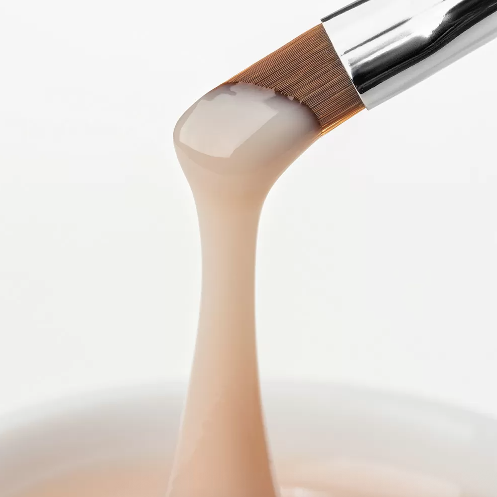 Легко распределяется любой удобной кистью и самовыравнивается по ногтю.
