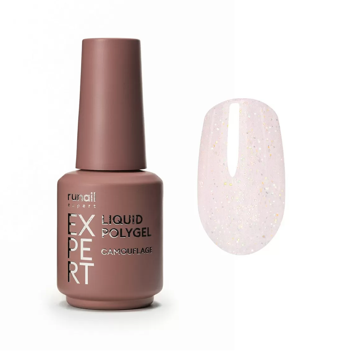 Жидкий полигель с шиммером Runail Expert - скрывает все несовершенства и дефекты ногтевой пластины за счёт высокой маскировочной способности, а также безукоризненно перекрывает границу свободного края и ногтевого ложа.