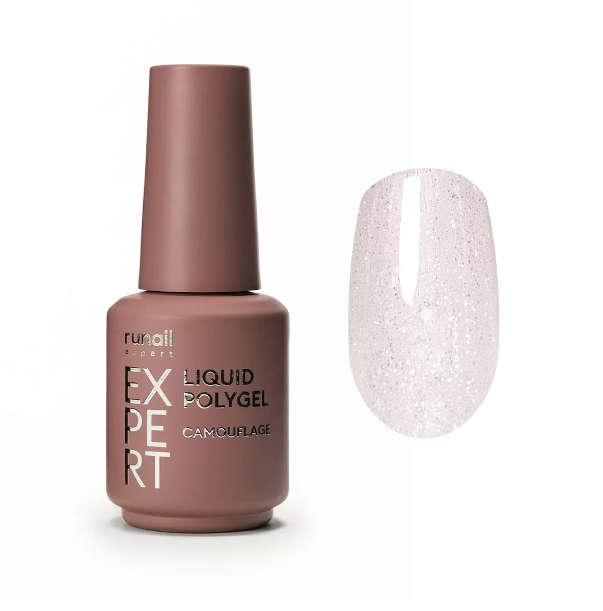 Жидкий полигель с шиммером Runail Expert - скрывает все несовершенства и дефекты ногтевой пластины за счёт высокой маскировочной способности, а также безукоризненно перекрывает границу свободного края и ногтевого ложа.