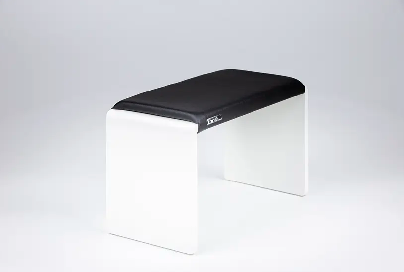 Подставка обшита искусственной экo-кожей, которая легко моется и дезинфицируется. Пластиковые ножки обеспечивают устойчивость и не скользят во время работы.