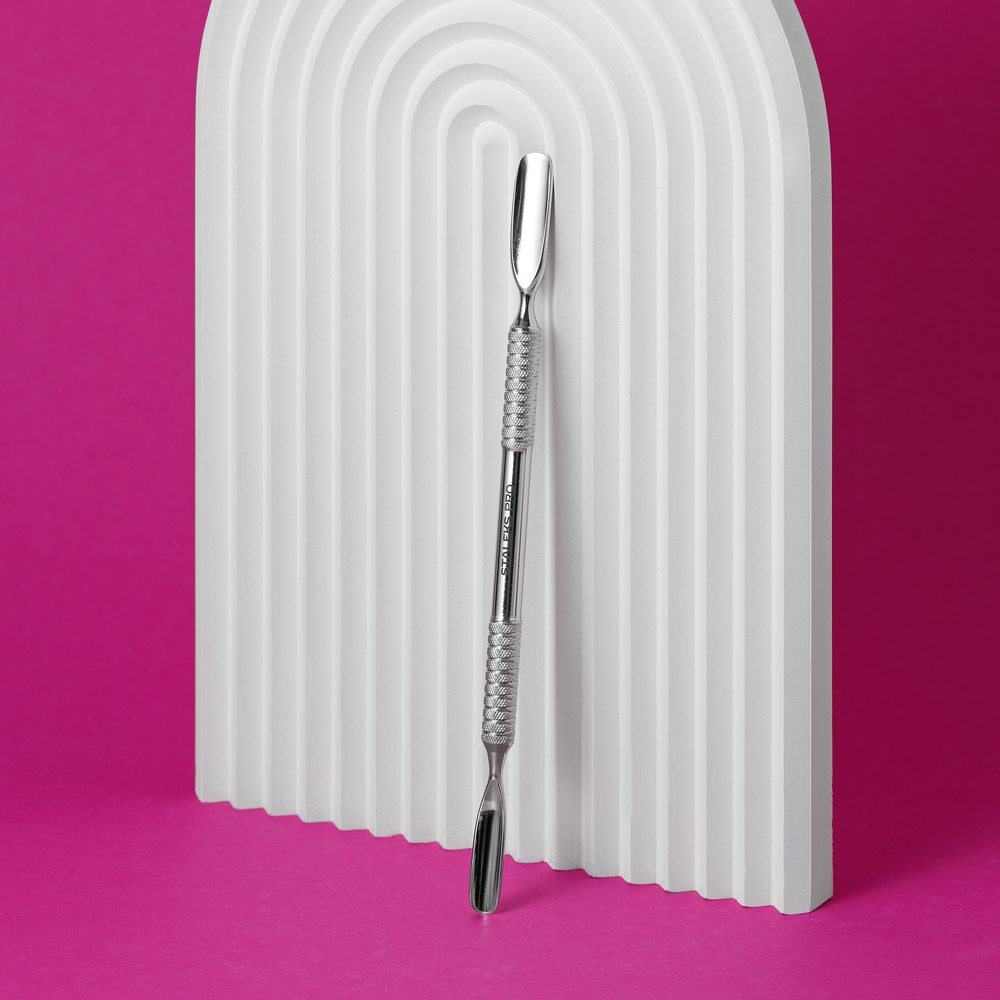 Лопатка маникюрная EXPERT (пушер скругленный широкий + скругленный узкий) - будет удобна мастеру в работе, так как с ее помощью можно будет обрабатывать одновременно и узкие и более широкие ногтевые пластины.