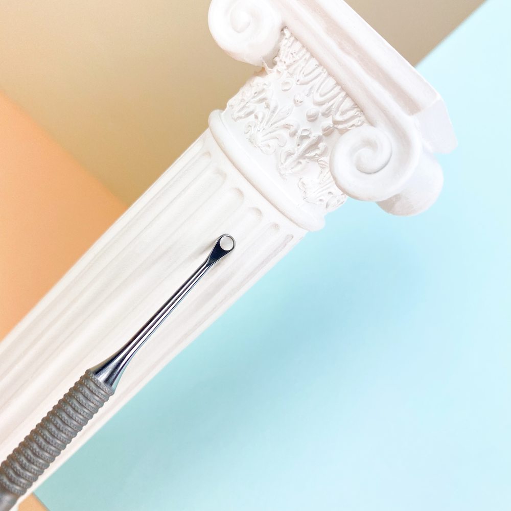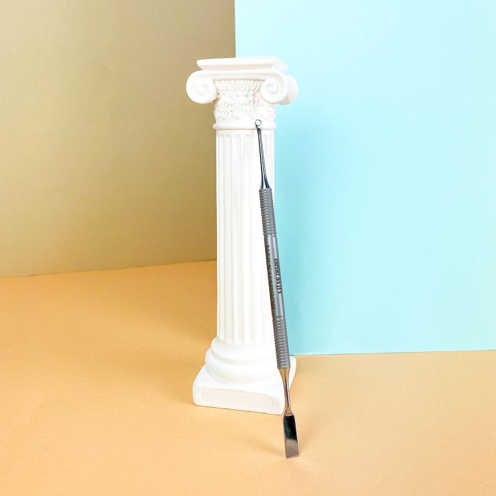 С удалением остатков налипшей кожи отлично справится вторая часть маникюрной лопатки — кюретка. Она мягко и безболезненно убирает все остатки кожицы, не травмируя ногтевую пластину.