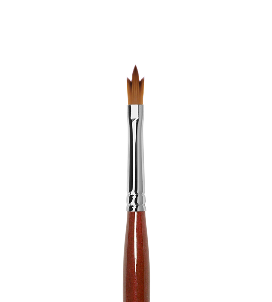 Создана для необычного, даже конкурсного нейл-арта. Сама форма кисти сделает элементы геометрического или цветочного дизайна за вас одним движением - вам даже не нужно ничего рисовать. Лучше всего инструмент проявит себя в технике жостовской росписи, а также в различных абстракциях. Кисть для росписи по ногтям хорошо работает с любым лаком и гель-лаком. Синтетический ворс кисти ручной обработки, имитирующий колонка, придаёт инструменту упругости. Изделие может работать одновременно с 2–3, 4 оттенками, и в результате вы получите необычную геометрию или абстрактный узор.