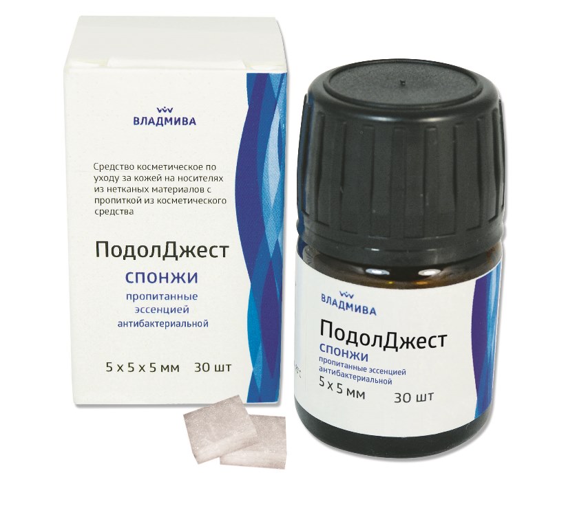 ВЛАДМИВА ПодолДжест спонж антибактериальный, 5*5 мм/30 шт.