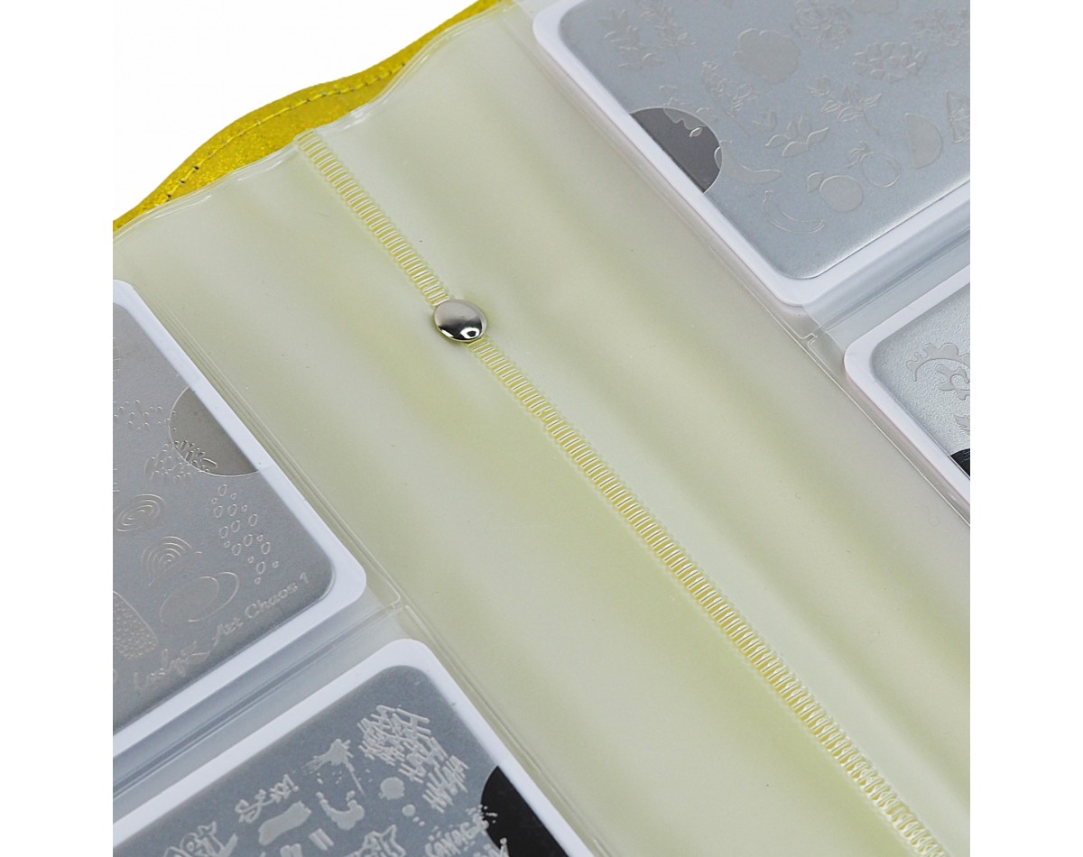 Организует рабочее пространство стемпингомана и упорядочит коллекцию. Используется для демонстрации клиенту имеющихся в ассортименте пластин, кейс для хранения заполняется ластинами по различным тематическим направлениям: пластины с цветами, пластины граффити, пластины с животным принтом и другие. Можно собрать пластины по сезонным тематикам: летние пластины для стемпинга, осенние пластины для стемпинга, зимние пластины для стемпинга и весенние плитки для стемпинга.