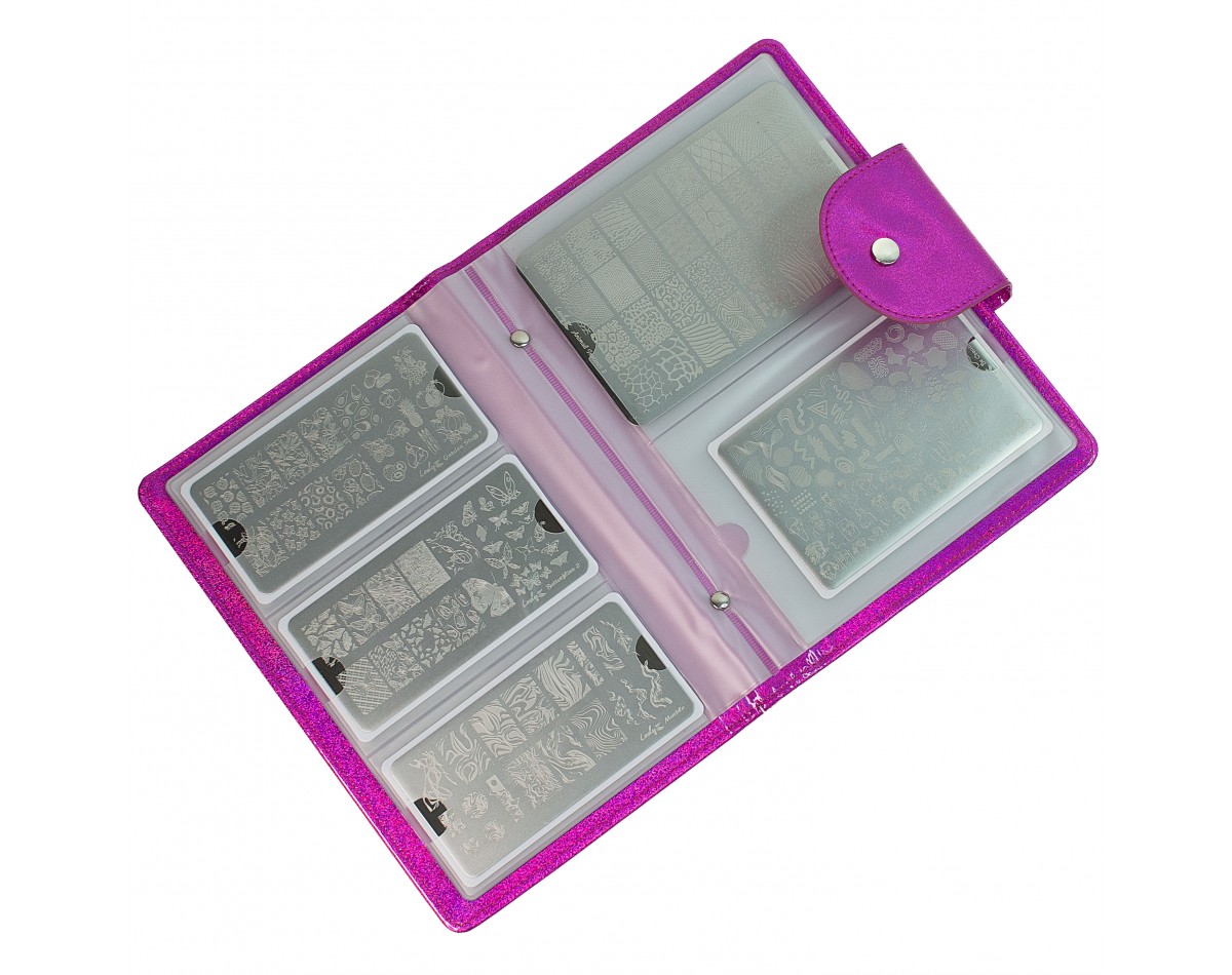 Организует рабочее пространство стемпингомана и упорядочит коллекцию. Используется для демонстрации клиенту имеющихся в ассортименте пластин, кейс для хранения заполняется ластинами по различным тематическим направлениям: пластины с цветами, пластины граффити, пластины с животным принтом и другие. Можно собрать пластины по сезонным тематикам: летние пластины для стемпинга, осенние пластины для стемпинга, зимние пластины для стемпинга и весенние плитки для стемпинга.