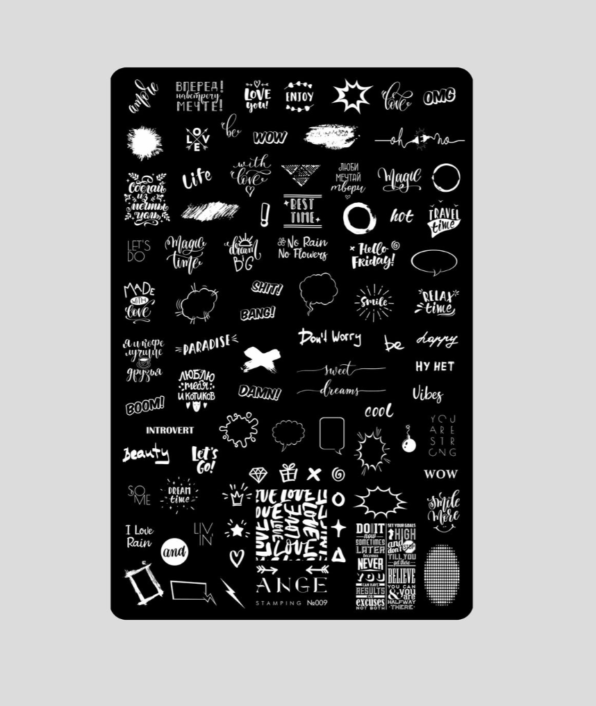 ANGE Пластина для стемпинга Ваше слово - имеет высокое качество гравировки рисунка, что позволяет без проблем переносить и отпечатывать даже самые маленькие изображения и тонкие линии.