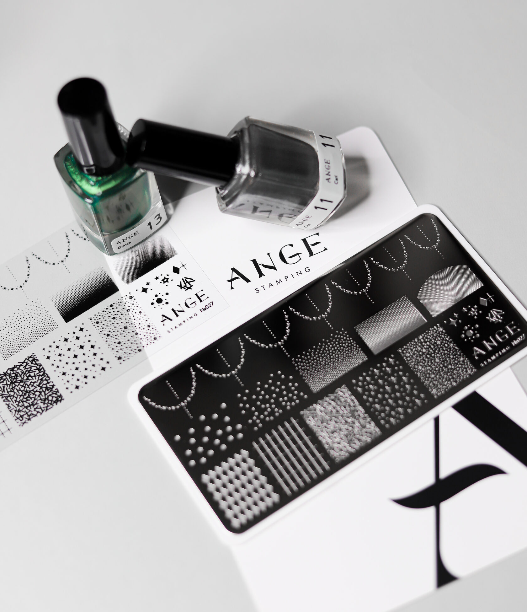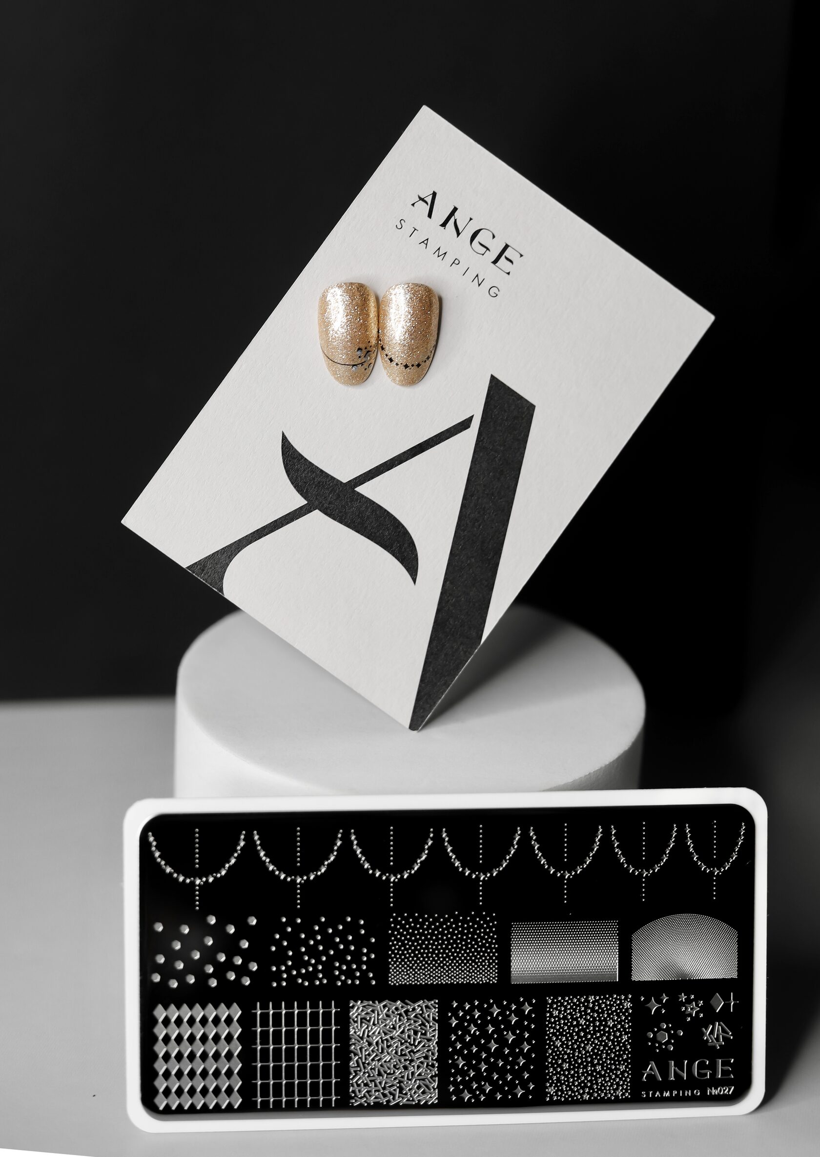ANGE Пластина для стемпинга с демо-листом - имеет высокое качество гравировки рисунка, что позволяет без проблем переносить и отпечатывать даже самые маленькие изображения и тонкие линии.