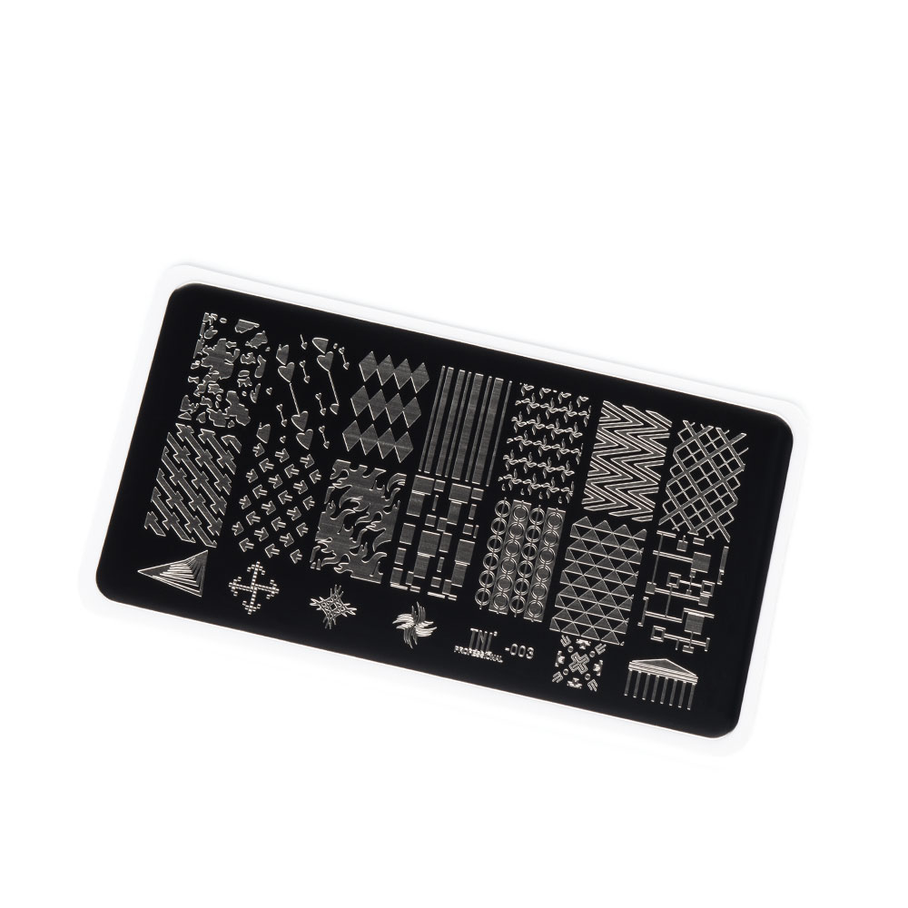 Пластина для стемпинга TNL №03 Premium - Тонкая металлическая пластина для стемпинга имеет брендированную подложку из пластика.