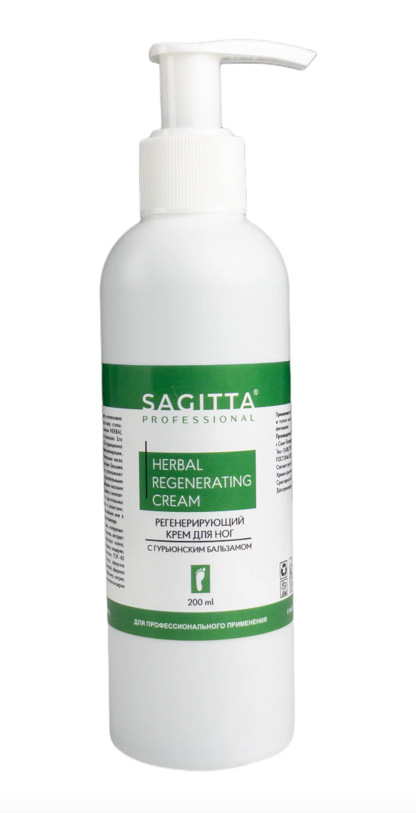 SAGITTA Professional Регенерирующий крем для ног с гурьюнским бальзамом - Успокаивает, восстанавливает, увлажняет и интенсивно заживляет сухую и потрескавшуюся кожу стопы.