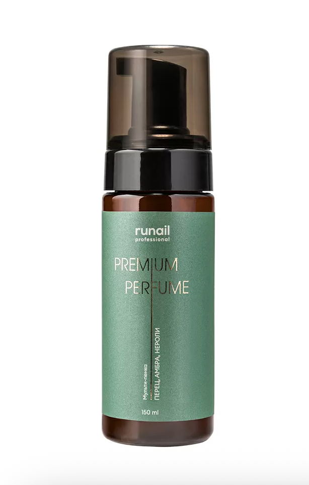 RuNail Очищающая мульти-пенка для маникюра и педикюра PREMIUM PERFUME (аромат: перец, амбра, нероли) - предназначена для бережного и эффективного очищения кожи рук и стоп.