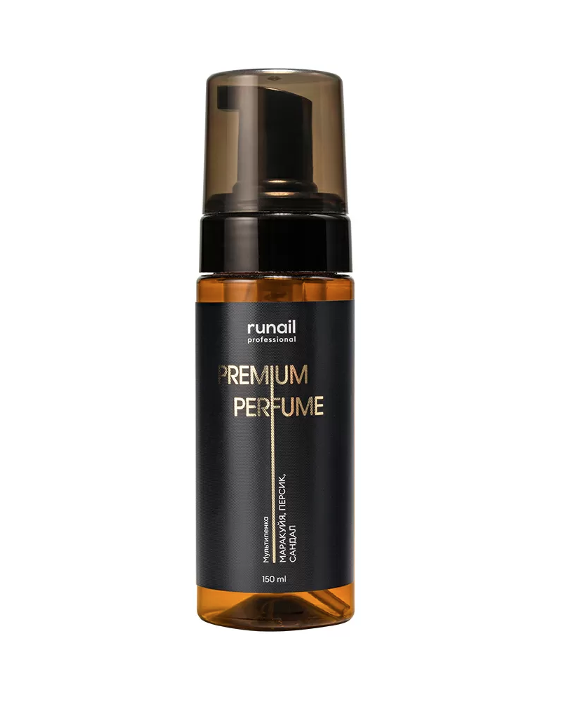 RuNail Очищающая мульти-пенка для маникюра и педикюра PREMIUM PERFUME (аромат: маракуйя, персик, сандал) - Многофункциональная пена предназначена для бережного и эффективного очищения кожи рук и стоп.
