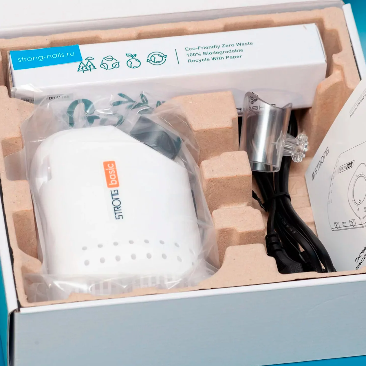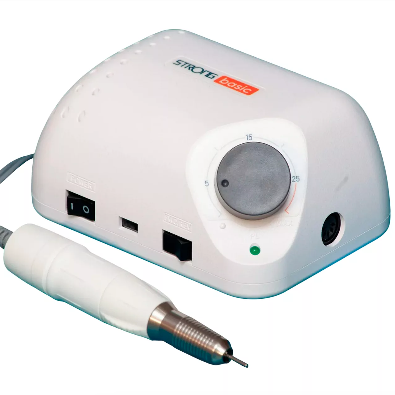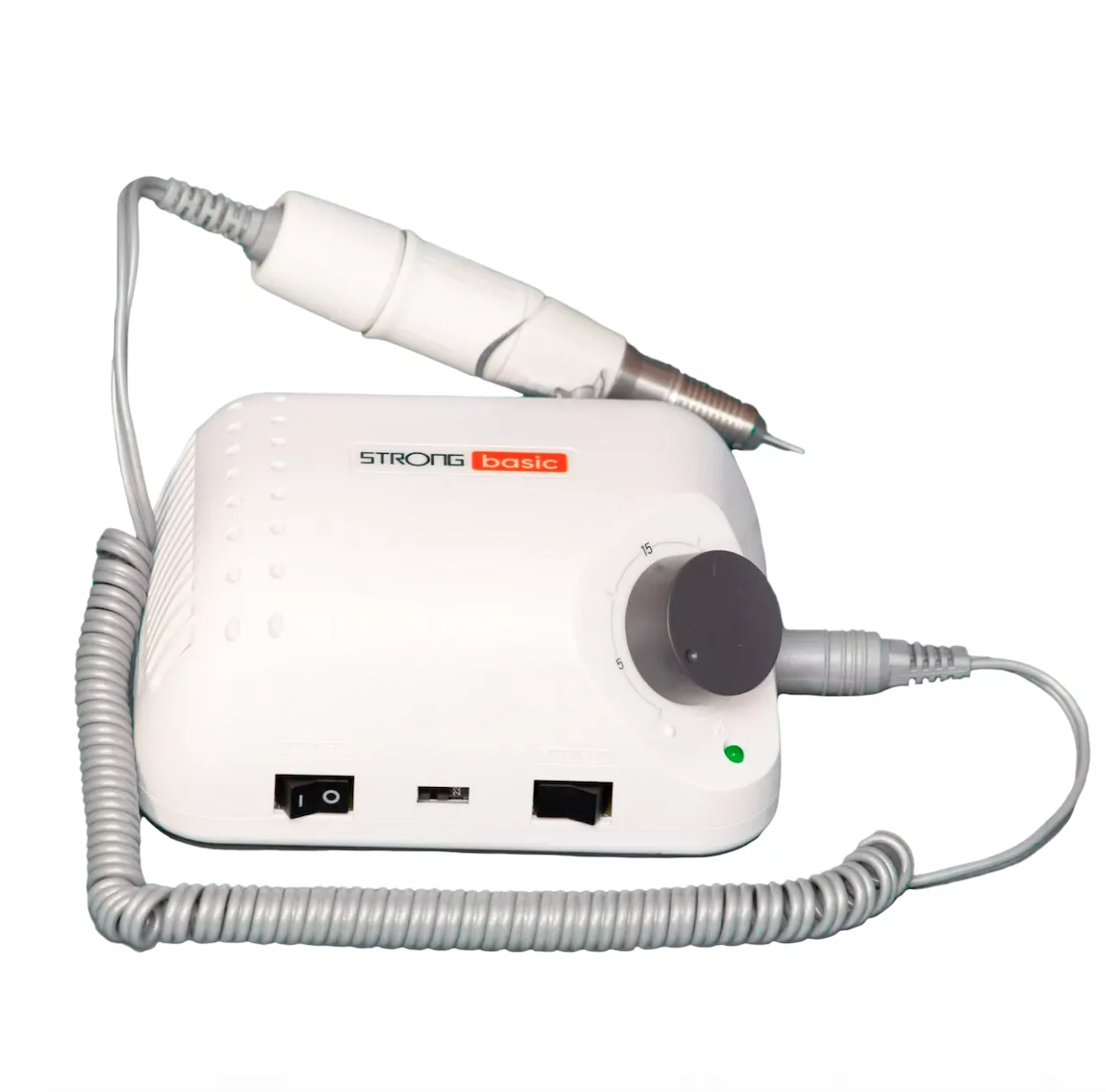 Ничего лишнего, только качество, надежность и лаконичный дизайн. Базовая модель Strong подойдет для мастеров маникюра. До 30 000 оборотов в минуту и легкий наконечник: всего 163 г, низкий уровень шума. Мощность блока, по-прежнему, 64 Вт, реверс, защита от перегрузок.