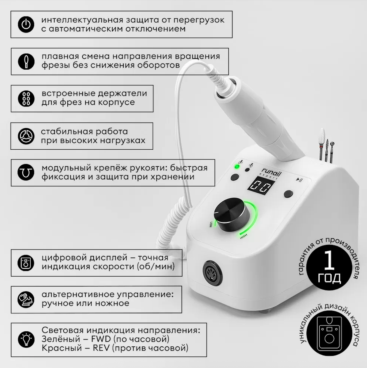 Купить Аппарат для маникюра и педикюра Ру нэил Эксперт 35000 об/мин в магазине Панда в Петропавловске-Камчатском.