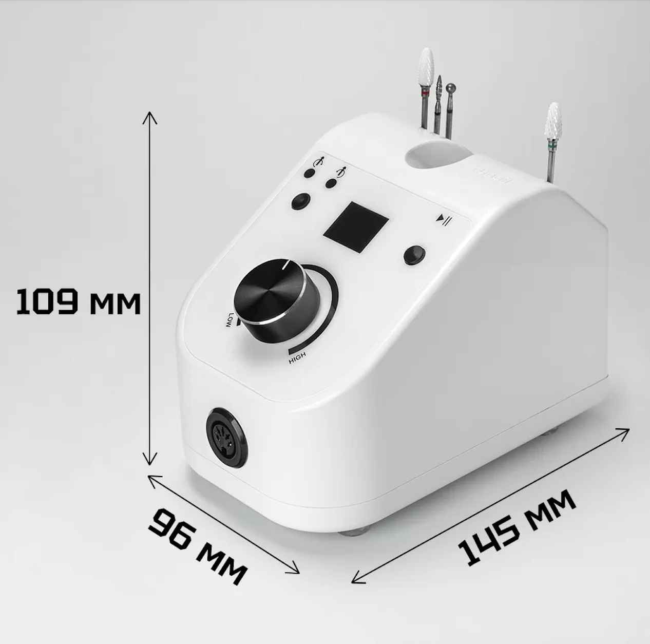 Предназначен для профессионального выполнения аппаратного маникюра и педикюра в условиях высокой нагрузки. Корпус аппарата выполнен в эргономичном исполнении, что обеспечивает максимальный комфорт при использовании. Цифровой дисплей наглядно отображает точную скорость вращения фрезы в оборотах в минуту.