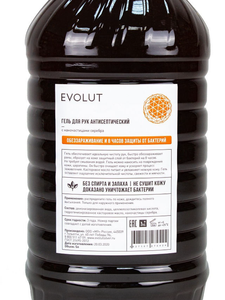 - Evolut Антисептич. гель для рук с наночастицами серебра, 5 л.