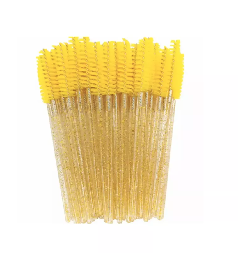 - Щёточки для ресниц нейлоновые с блестками желтые, 10 шт./упак.