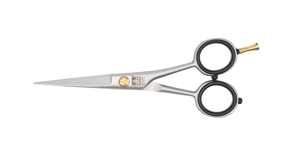 - Ножницы имеет классическую форму и соединены при помощи простого винта, обеспечивающего плавный и мягкий ход ножниц. Винт легко подтянуть или снять для осуществления регулировки и очистки конструкции ножниц от пыли.