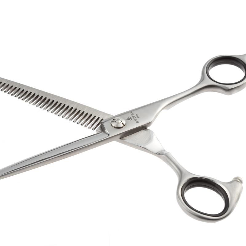 Данная модель имеет длину 6 дюймов, на одном из двух полотен имеются 30 специальных зубцов, которые обеспечивают частичный срез объема волос для осуществления филировки.