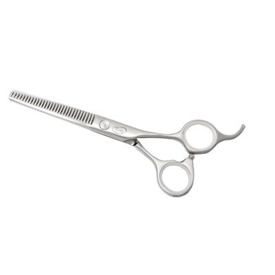 30 филировочных зубьев Эргономичная форма Регулировочный винт Длина ножниц 5,5 " (140 мм.) Съёмные кольца-вкладыши Опора для пальца