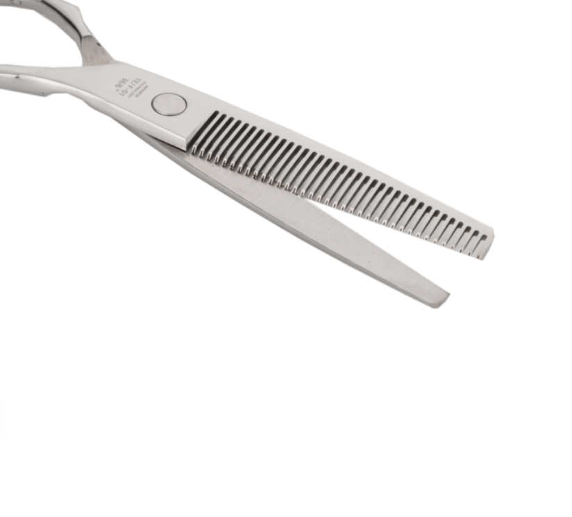 Имеют 36 зуба. Эргономичная форма изделия и наличие упора для мизинца позволяет правильно и удобно держать ножницы. Филировочные ножницы используются для прореживания (филировки) волос. Сочетание запатентованного механизма винтовой группы и высокого качества подшипника (Techno) обеспечивает равномерный прижим полотен ножниц на протяжении всего срока эксплуатации.
