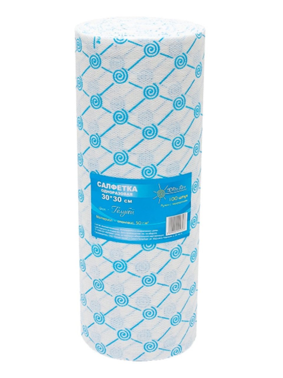 Салфетка одноразовая 30*30 спанлейс 50 голубой White line (№100) рол.