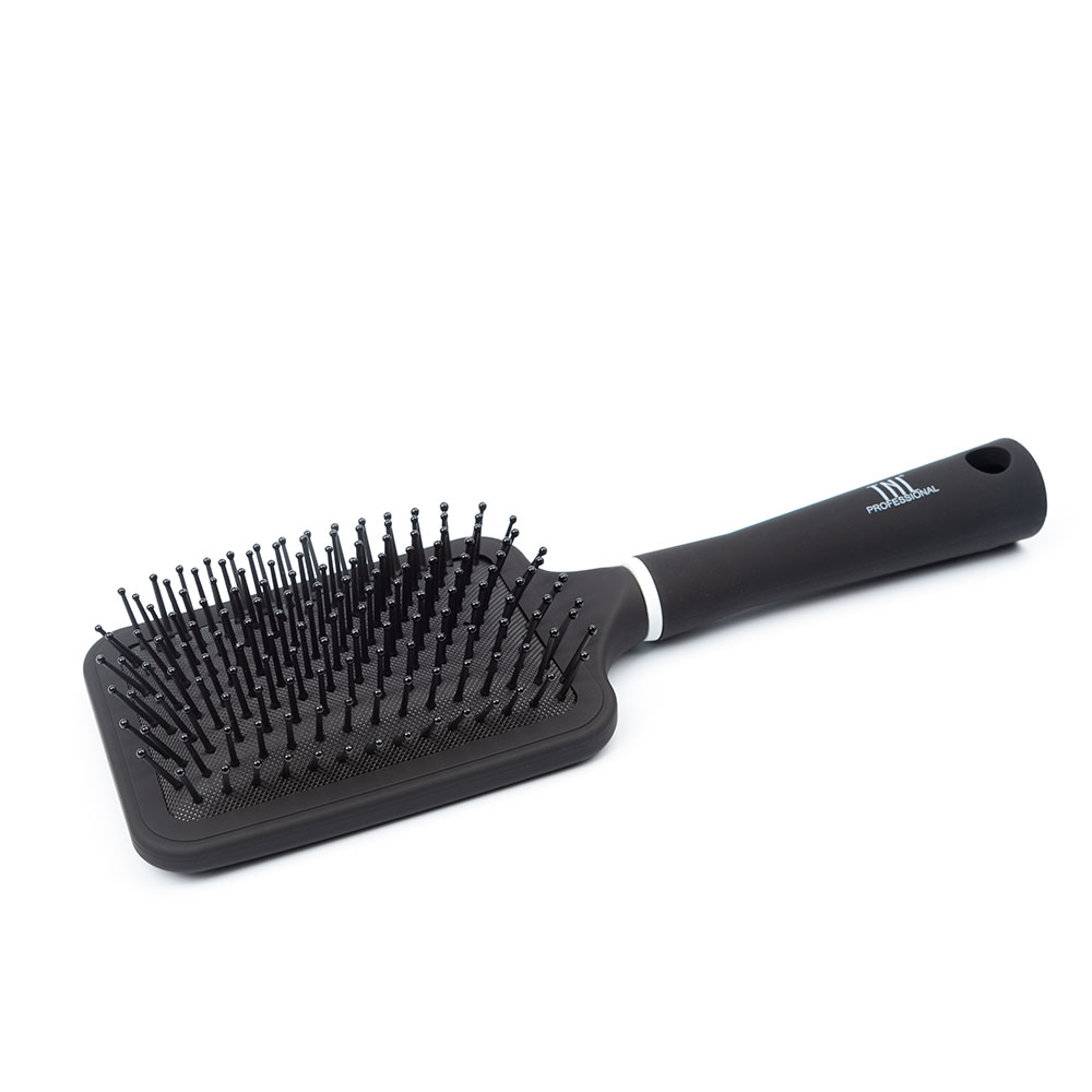 TNL Щетка массажная для волос прямоугольная, нейлоновые штифты, 84 мм, черная.