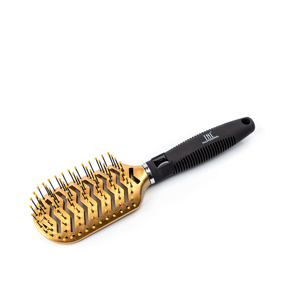 TNL Щетка массажная для волос овальная, продувная, нейлоновые штифты, 63 мм, золотая.