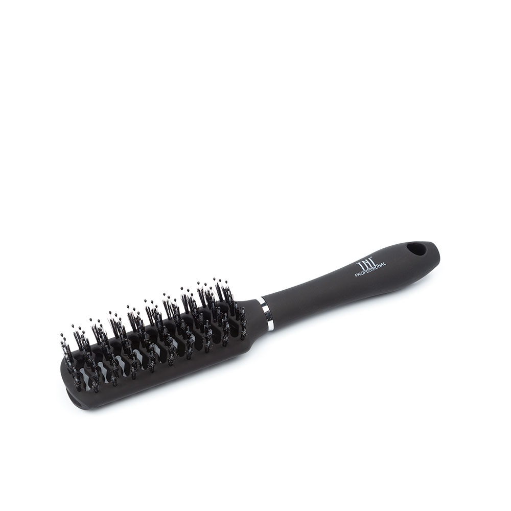 TNL Щетка туннельная для волос прямоугольная, продувная, нейлоновые штифты, 40 мм, черная.