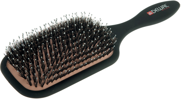 Пластиковый штифт+натуральная щетина, 13 рядов, прямоугольная. С помощью такой расчески сушка становится быстрой и легкой.