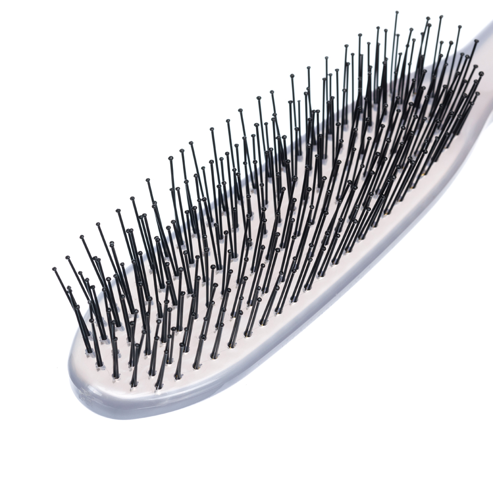 Двойная тонкая нейлоновая щетина обеспечит наиболее деликатное распутывание волос без повреждения их структуры.
