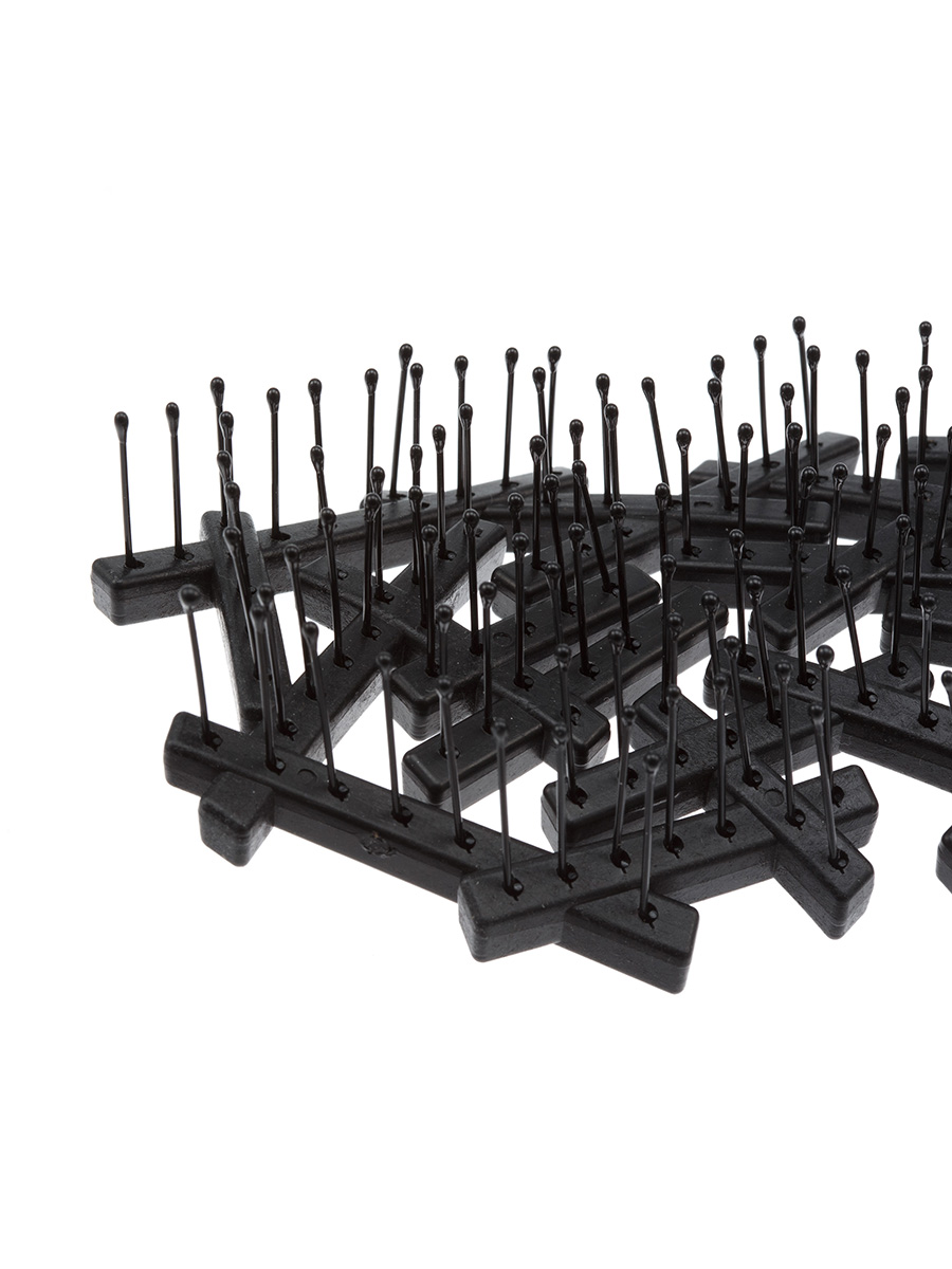 Эргономичный дизайн идеально повторяет форму головы. Упругая, мягкая щетина обладает высокой эластичностью и отлично массирует кожу. При расчесывании и укладке такой щеткой, волосы меньше ломаются и не повреждаются. Щетка может использоваться для распутывания влажных или сухих волос.