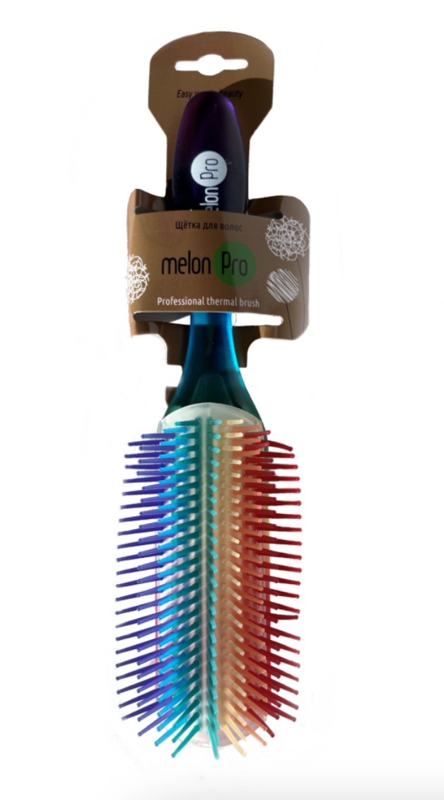 Melon Pro Продувная щётка 9-рядная - оснащена щетинками, которые не вызывают статическое электричество, не царапают кожу головы и деликатно распутывают локоны не травмируя структуру прядей.