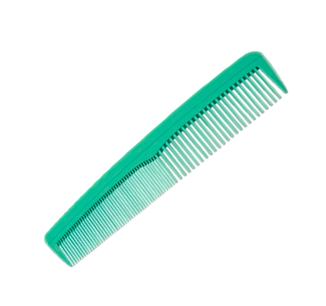 Расческа имеет две стороны: одна сторона с широкими зубчиками для распутывания и разделения волос, а другая сторона с тонкими зубчиками для придания волосам объема и блеска.
