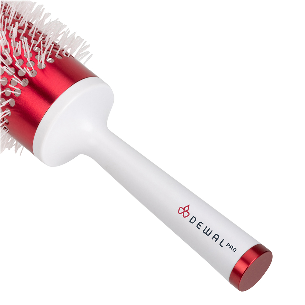 С алюминиевым анодированным покрытием. Такое покрытие быстро и равномерно нагревается. При сушке феном не пересушивает волосы. Рабочая поверхность термобрашинга сохраняет яркий, блестящий цвет. Не тускнеет.