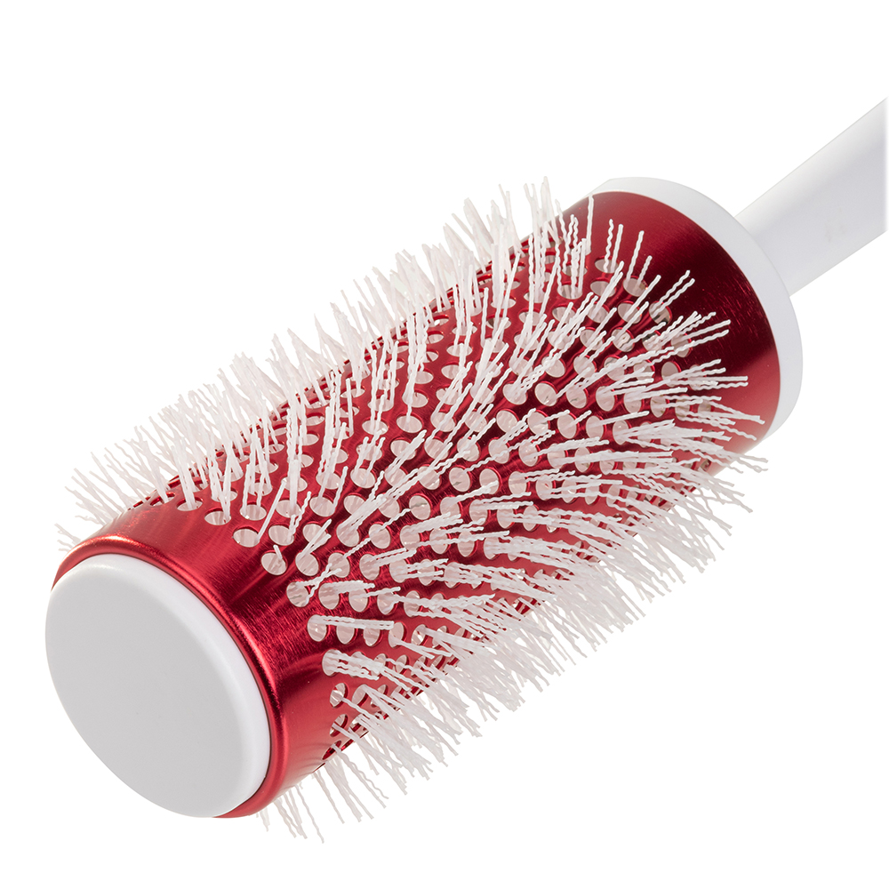 Волнистая нейлоновая щетина хорошо удерживает прядь волос при укладке.