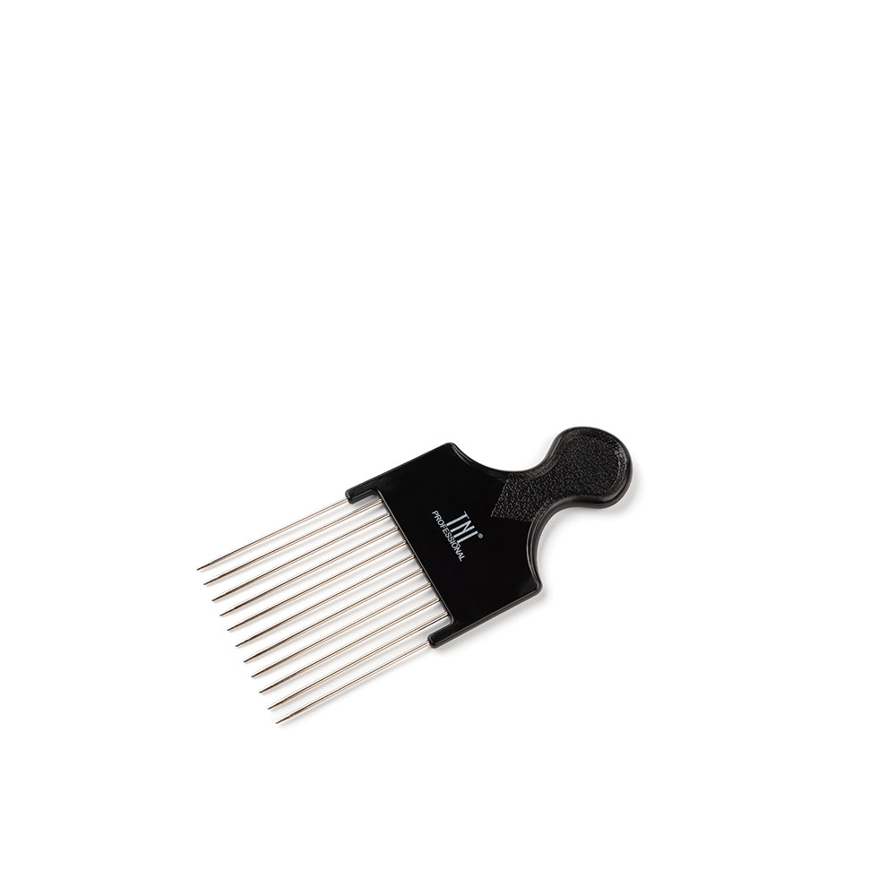 TNL Гребень для моделирования прически, с металлическими зубьями, средний, черный с круглой ручкой.