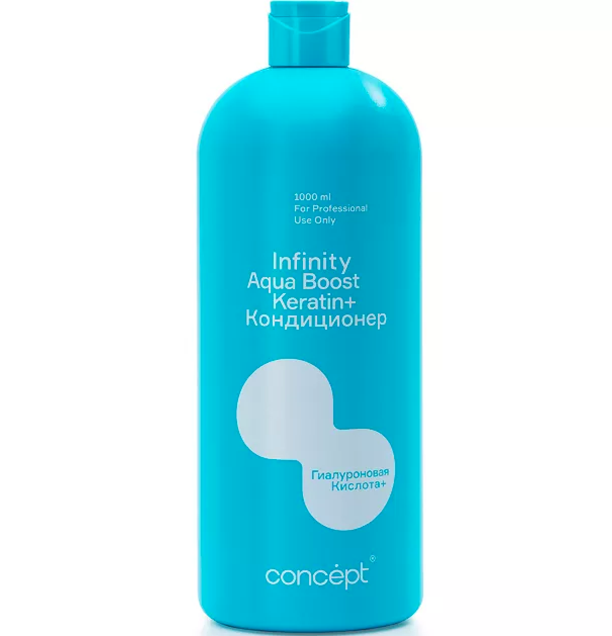 Концепт INFINITY Кондиционер увлажняющий Aqua Boost Conditioner Keratin + - насыщает влагой кортекс и выравнивает кутикулу волос, не утяжеляя их.