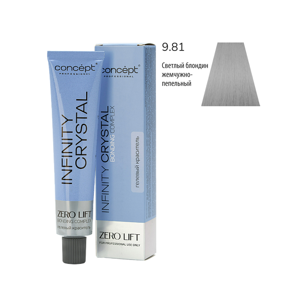 - КОНЦЕПТ INFINITY CRYSTAL 9.81 Гелевый краситель, светлый блондин жемчужно-пепельный, 60 мл.